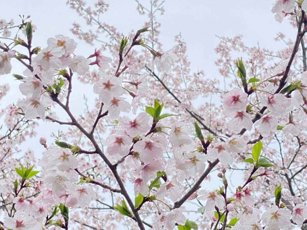 雨を受ける桜を愛でる。